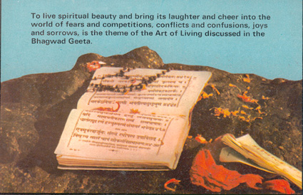 Le texte de référence est : " La Bhagavad Gîtâ", avec le commentaire intégral de Swami Chinmayananda (12,90€). En vente sur place.